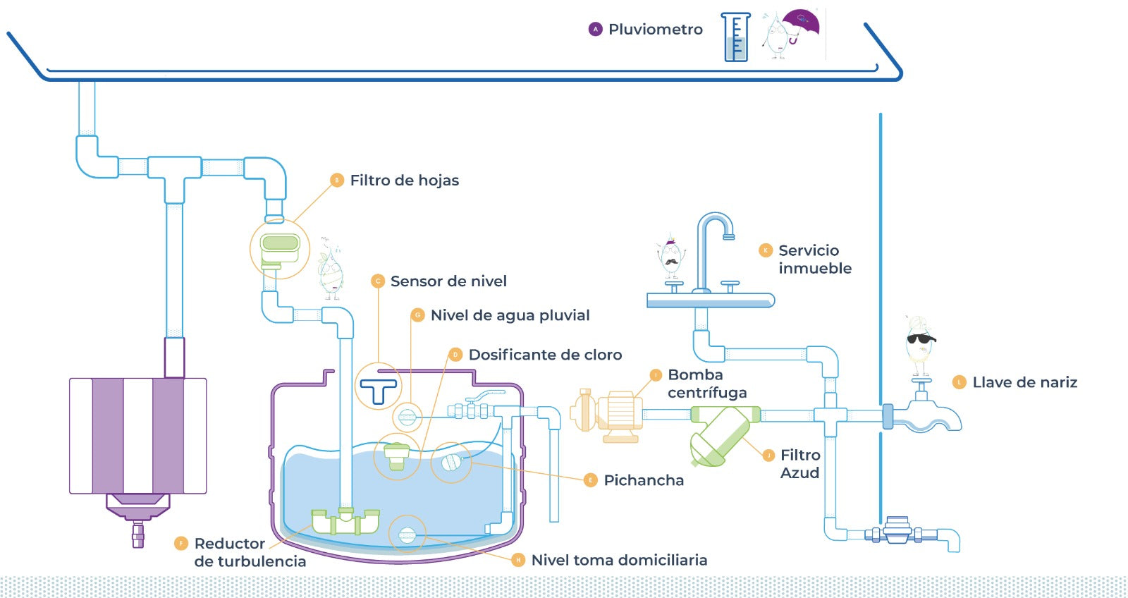 El tanque de almacenamiento funciona como un sistema de reserva para la época de sequía y así puedan contar con una mayor capacidad de agua, si el tanque se encuentra lleno puede otorgar agua por 6 días a una familia de 4 personas.
